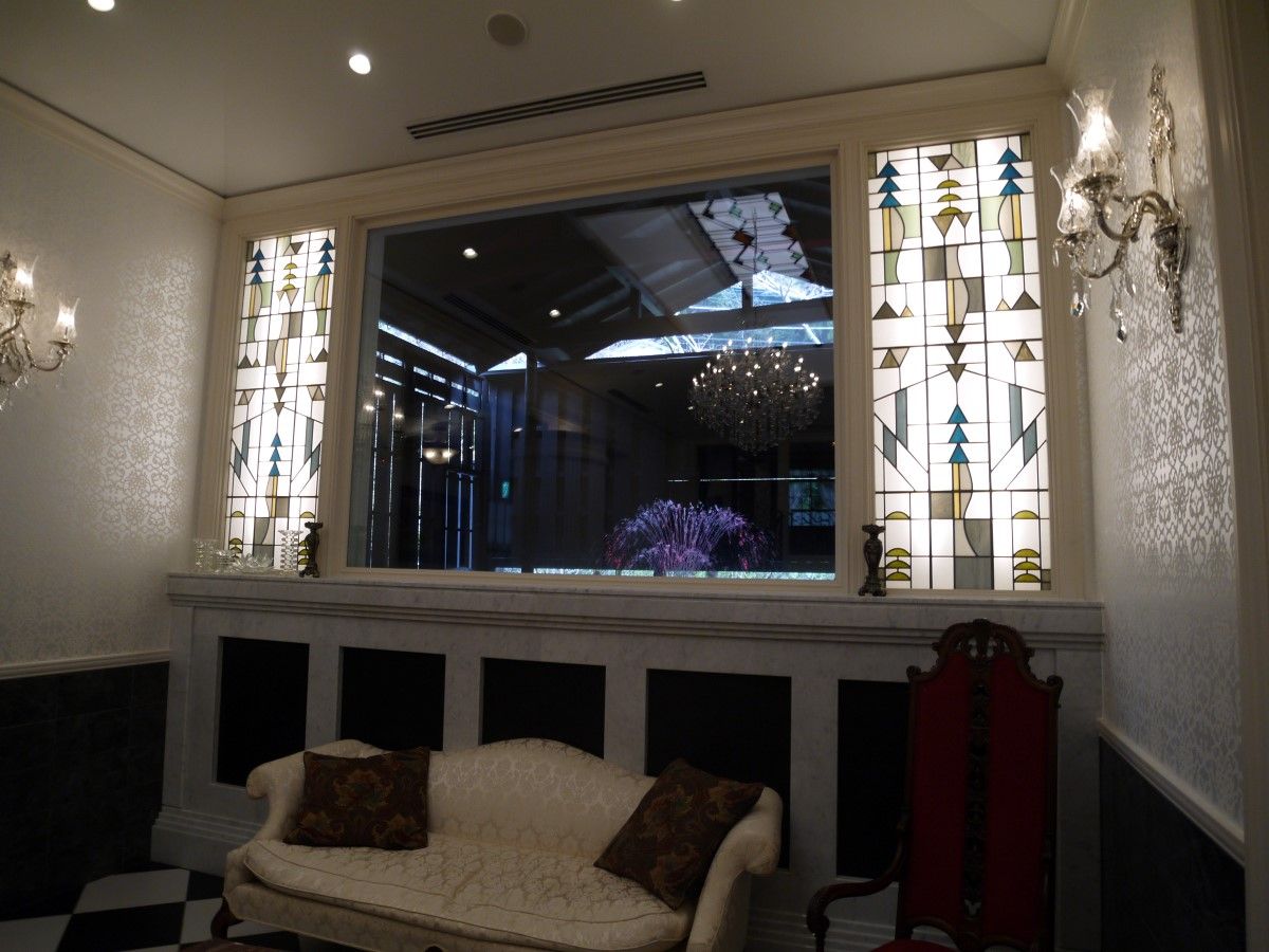 ステンドグラスと巨大シャンデリア