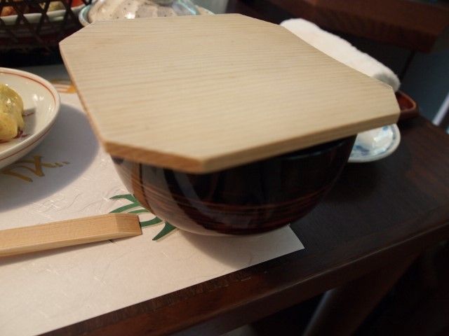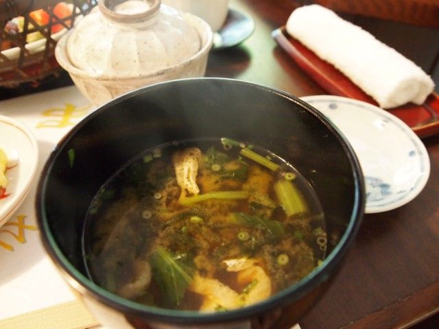 木の蓋がかかったお味噌汁は あおさ海苔