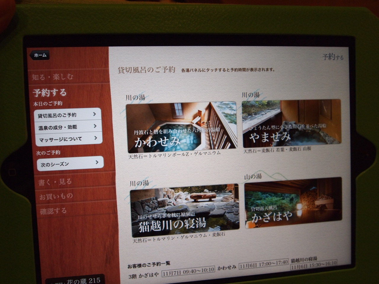 お部屋のipadで予約できます