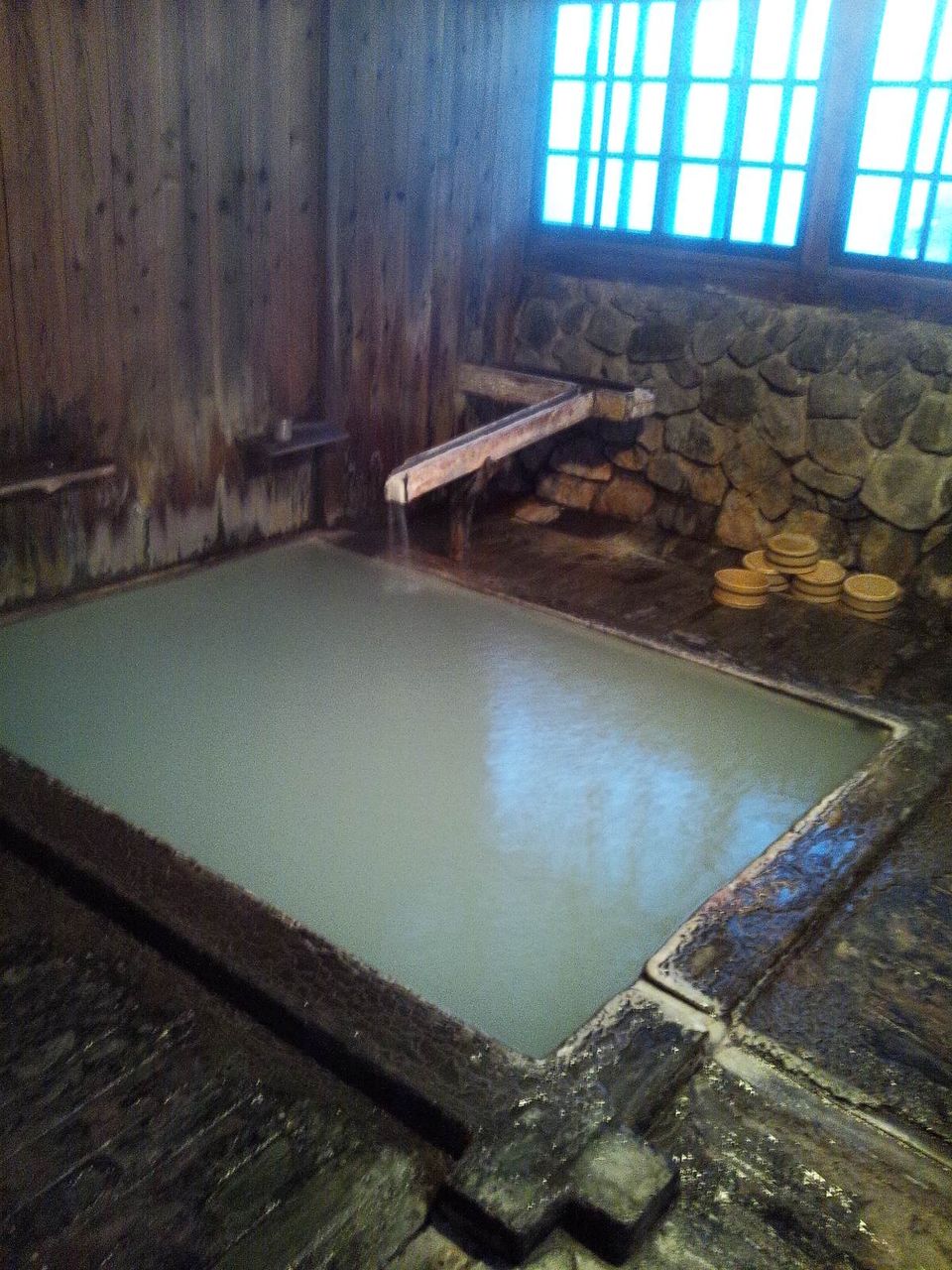 4つの源泉のうち、打たせ湯である「滝の湯」は冬期閉鎖らしく止まってました。残念。