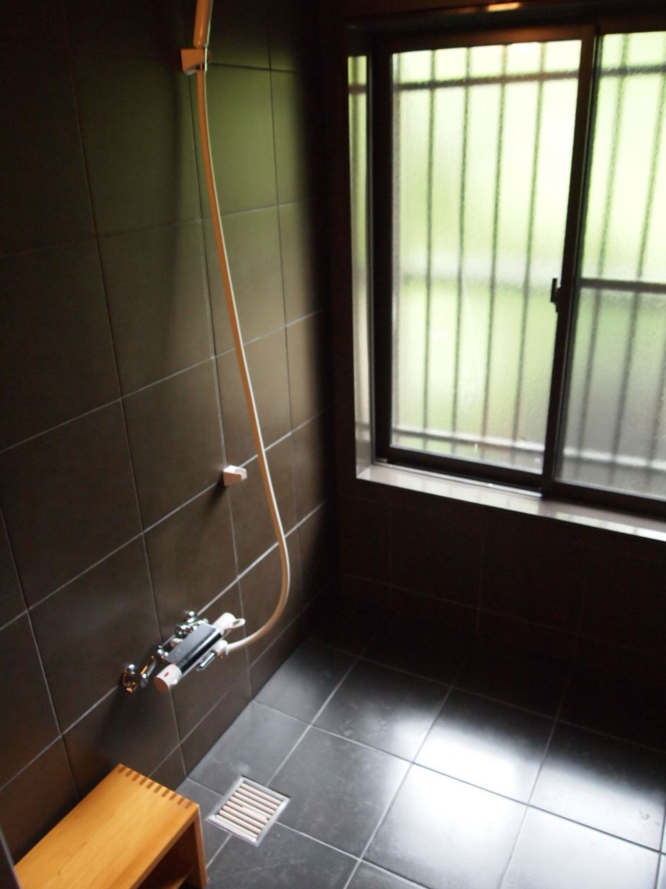 ほんとにシャワー浴びるだけという感じ^^; ううん。 広さや諸問題あったのだろうけど、狭くても内風呂をつけることはできなかったんだろうか。