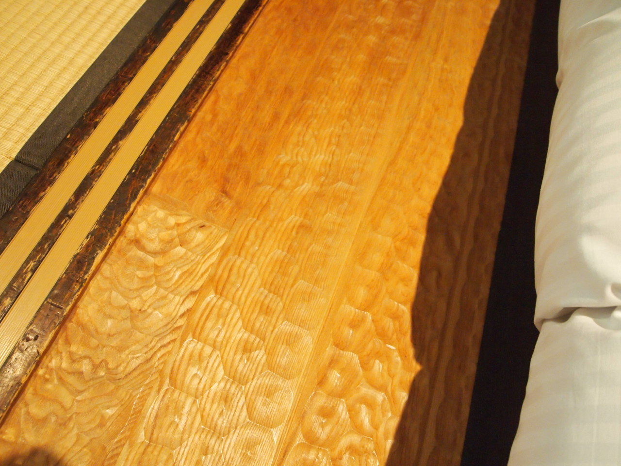 寝室の床だけ変わった板張りでした。 なめらかな凹凸があるのだけど、素足で歩くときもちいいです