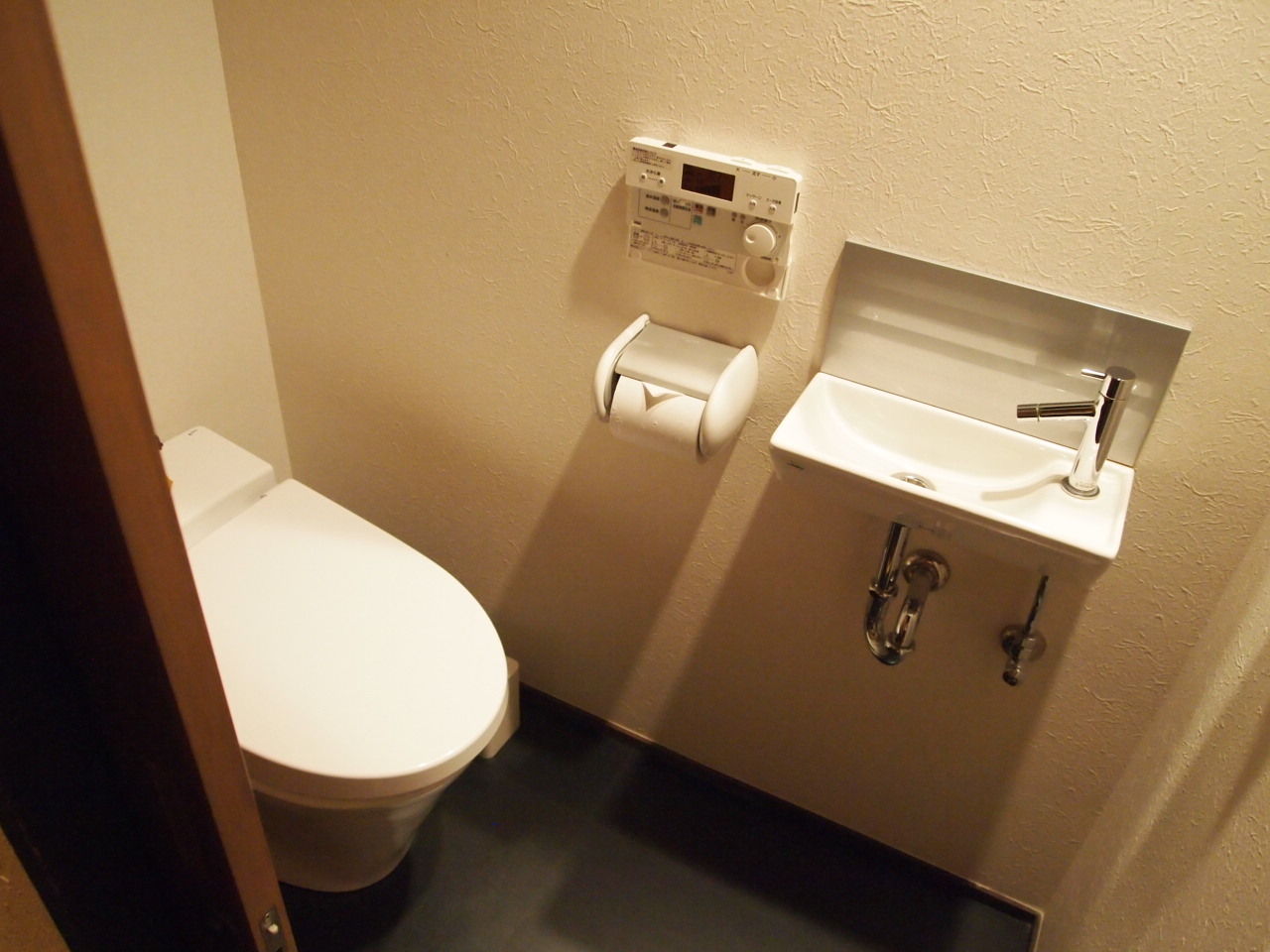 お手洗い。 とってもキレイで新しいウォシュレット。 玄関脇にあって、場所もいいんですがちょうど靴を脱ぐところに引き戸があるので外履きを履いてから入るような不便さも^^;