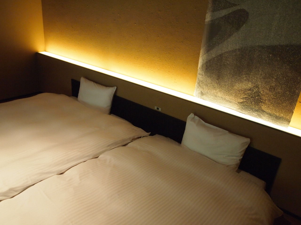 照明も美しく、とってもシンプルな寝室。 読書ライトがないのが惜しい(>ω<)