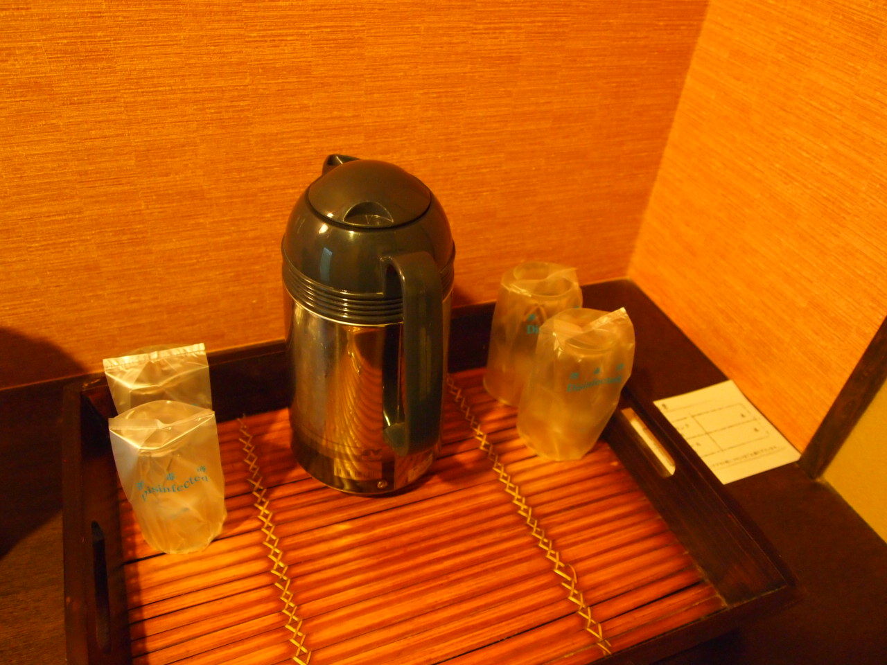 最近はお茶以外飲み物が有料になってる宿も多いのですが、こちらはコーヒーもいただけるようになってました。(もちろんお茶セットもありました)