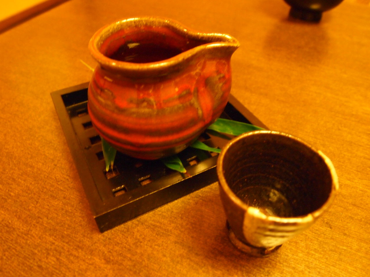お料理を考えると、、、日本酒にるかなあ。 味わいのある器で出してくれます。