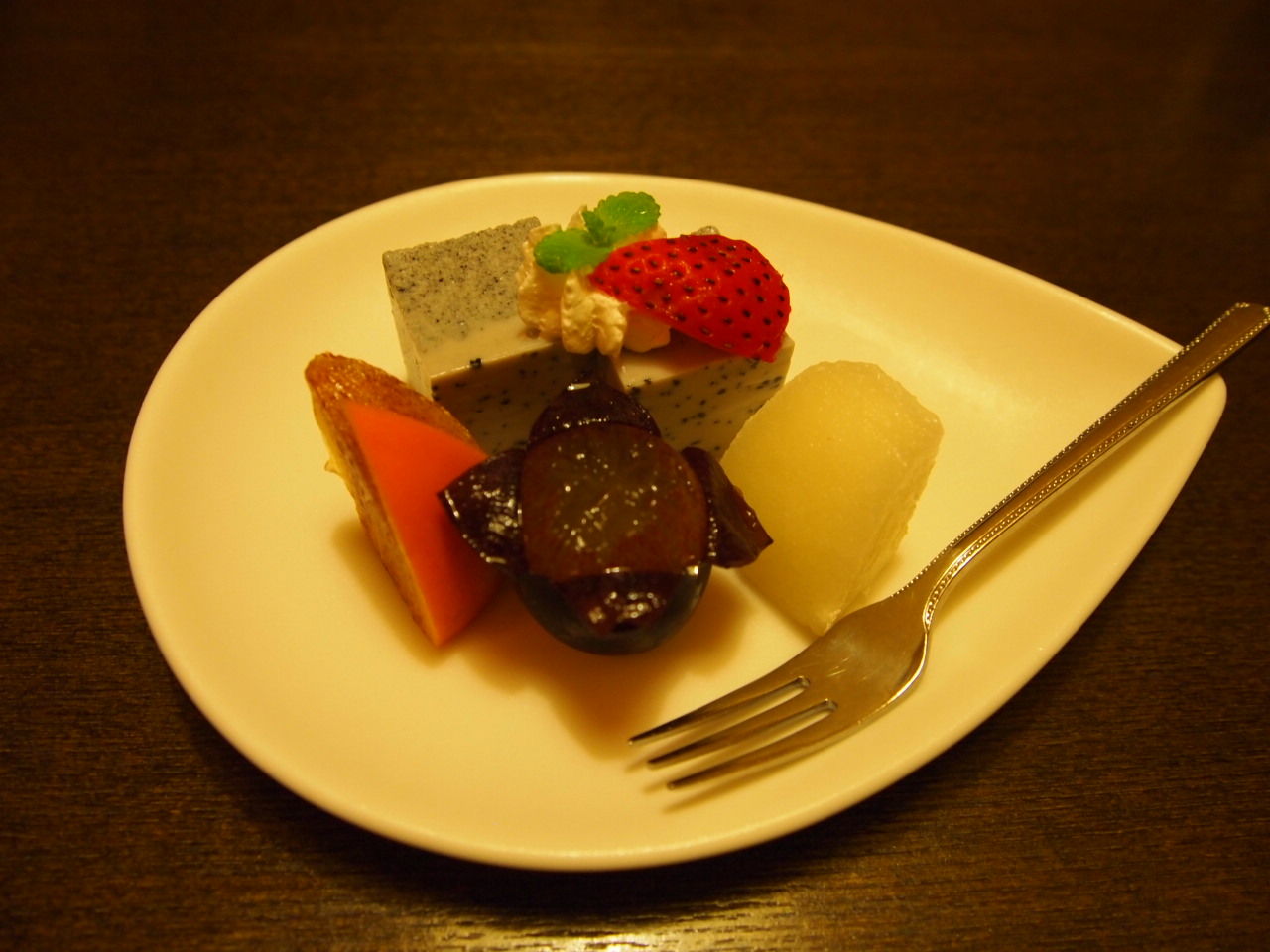 お楽しみのデザート(*´∀`*) むか~しはメロンだけ、とかが当たり前だった時代もあったのだろうなあ。