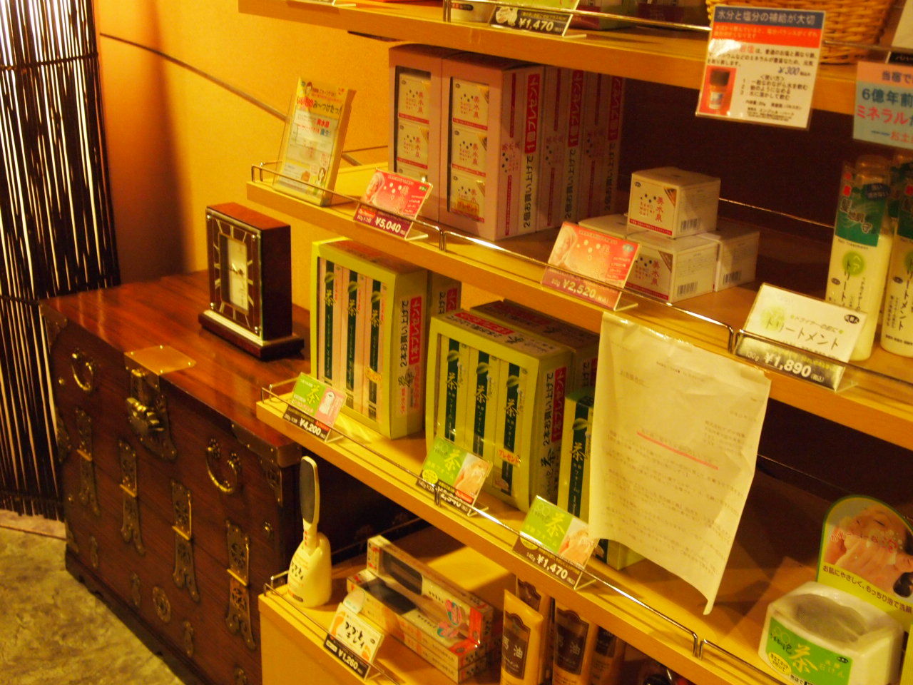 帰りに売店を覗いてみると、あはは( ´∀`) お茶ソープやらかかとヤスリやらお部屋にあるものが売られてます。 実用的な品揃えは、この宿らしい。
