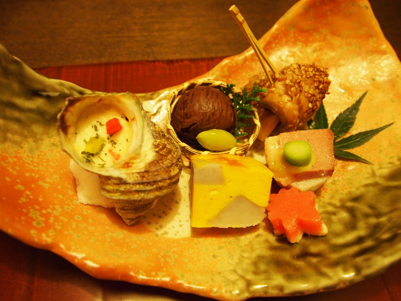 盛り付けも美しい 旬菜・・・ 栗の渋皮煮 姫サザエの香草焼き(絶品!) 石垣南瓜