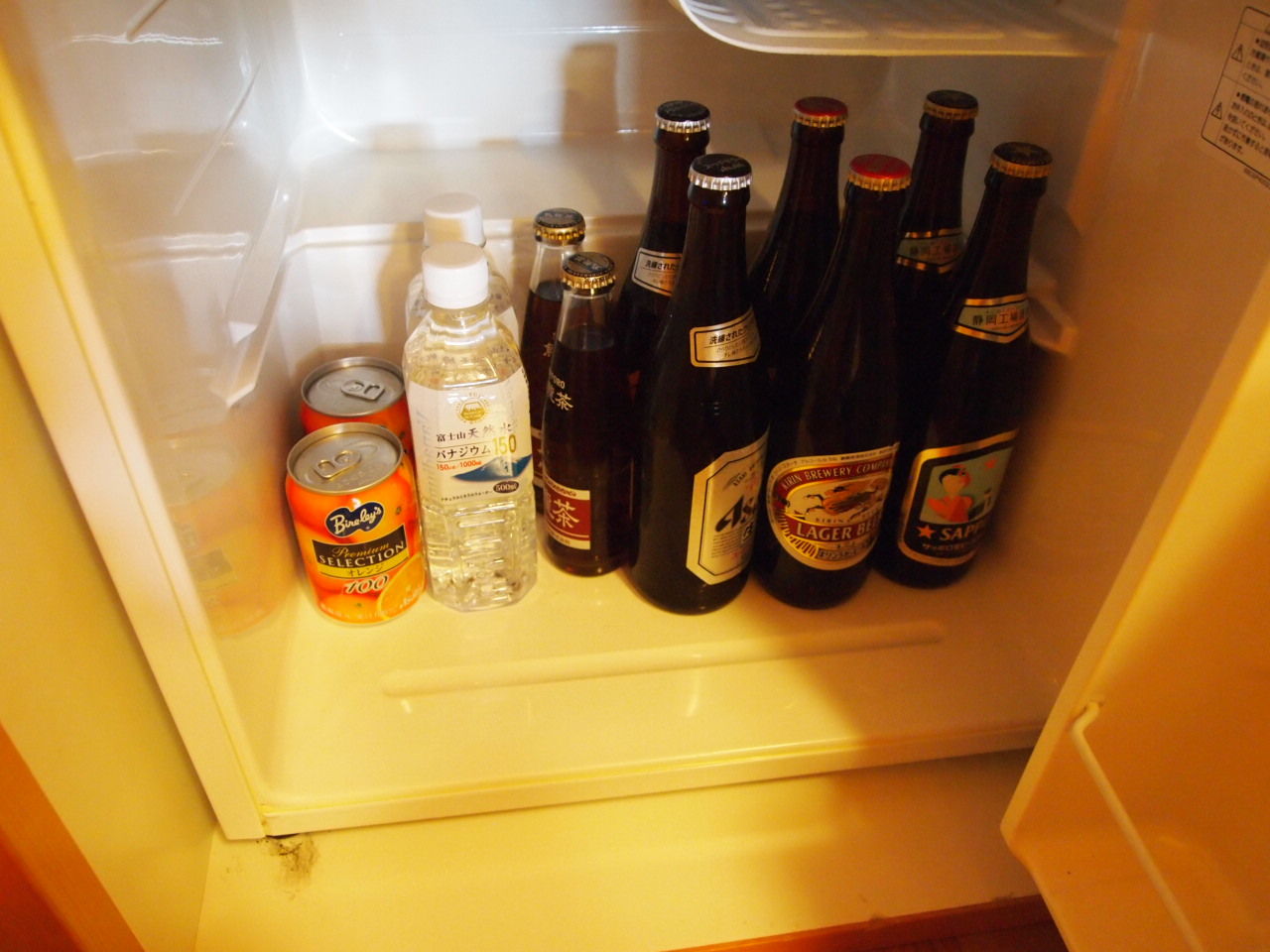 冷蔵庫の中は瓶ビール(800円ぐらい)や