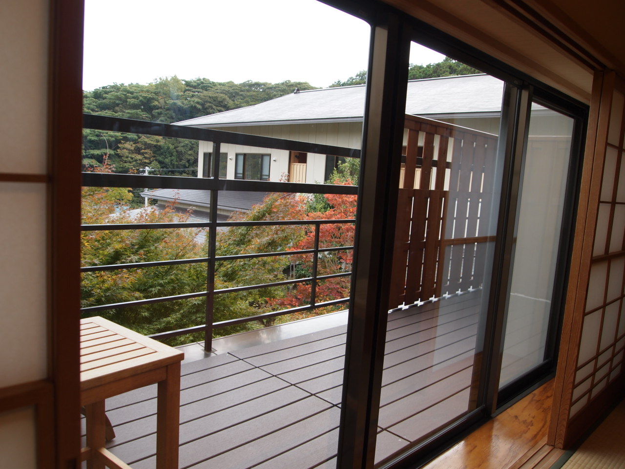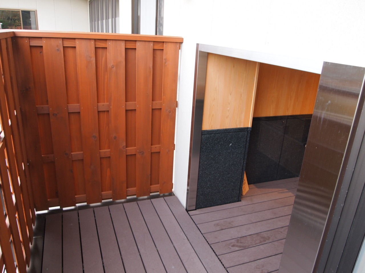 半露天は通路のような空間にあるので、このガラス窓のおかげで