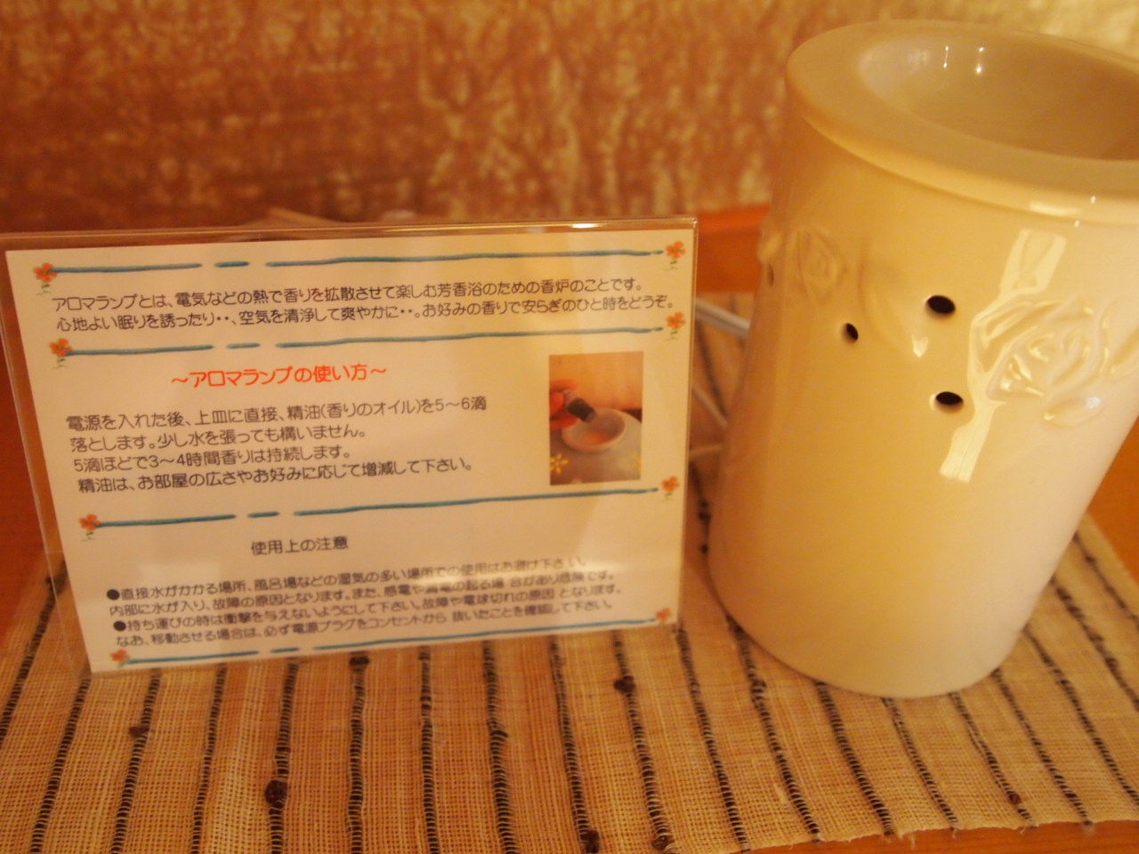 枕元にはアロマポットが♪