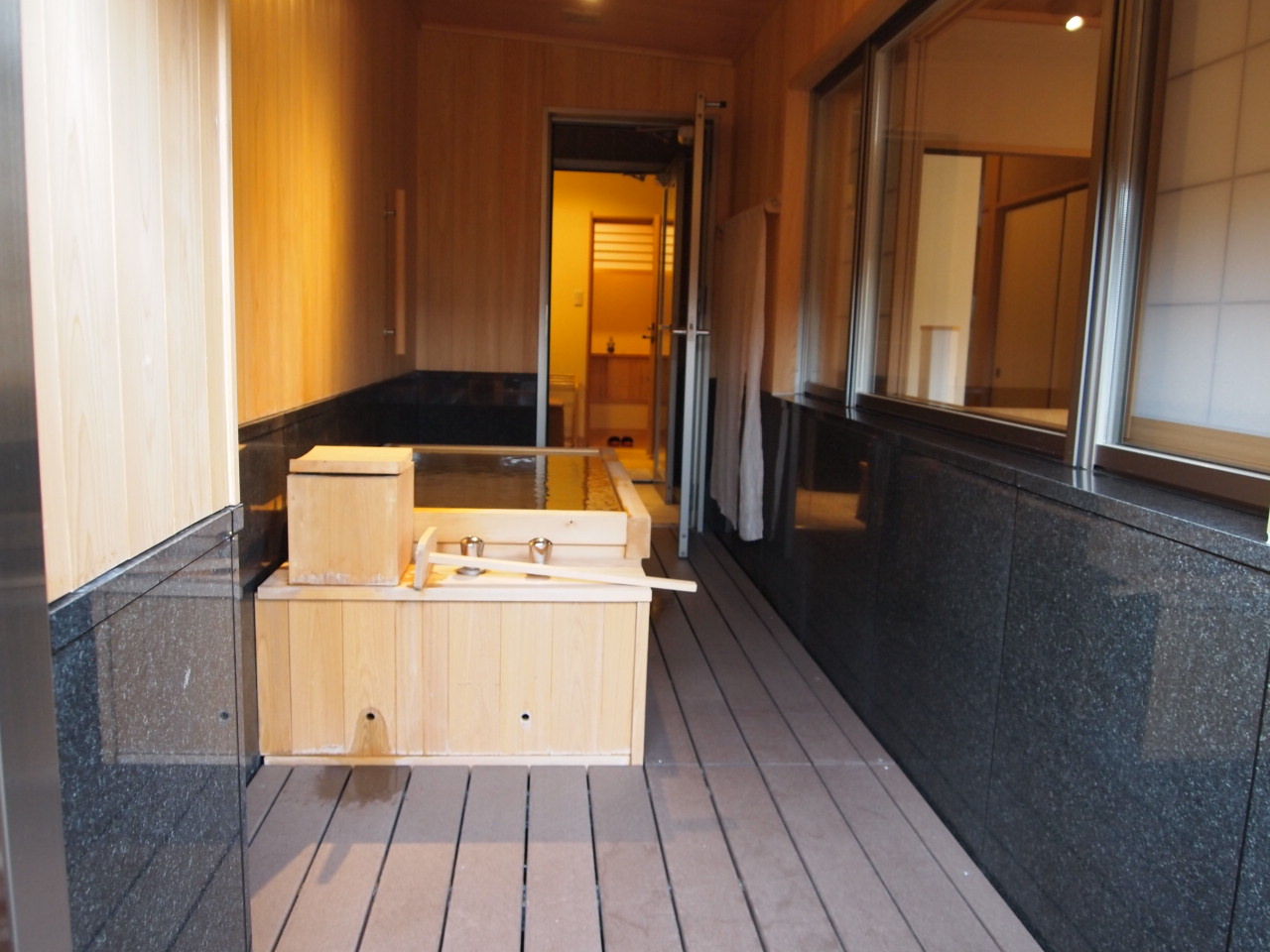 ガラス窓の向こうが半露天です。