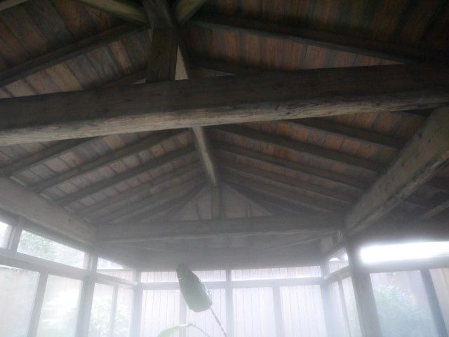 高い天井には 立派な柱
