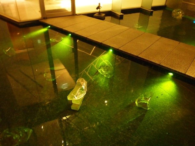 例のガラスの階段を降りていきます