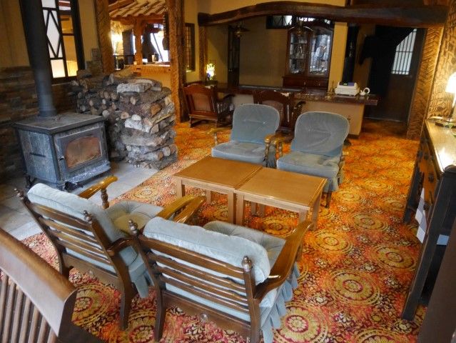 絨毯やソファーの色がレトロだわあ