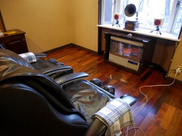 ストーブ目の前でマッサージ