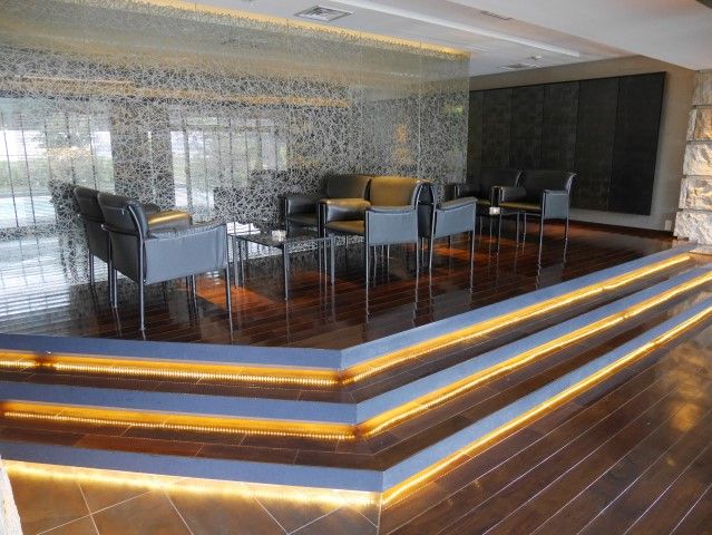 ガラスや間接照明がバンバン使われてて