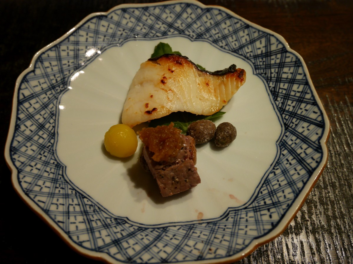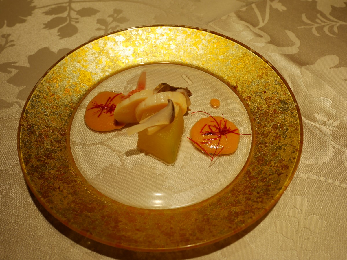 酸味のある鮟肝ソースと何かの貝柱という