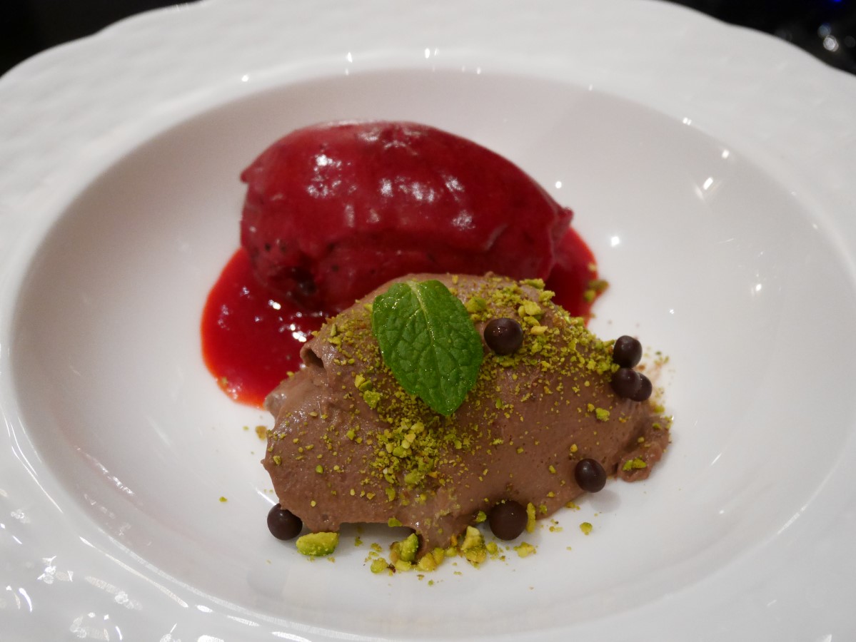 トンカ豆のチョコプリンとカシスのソルベ