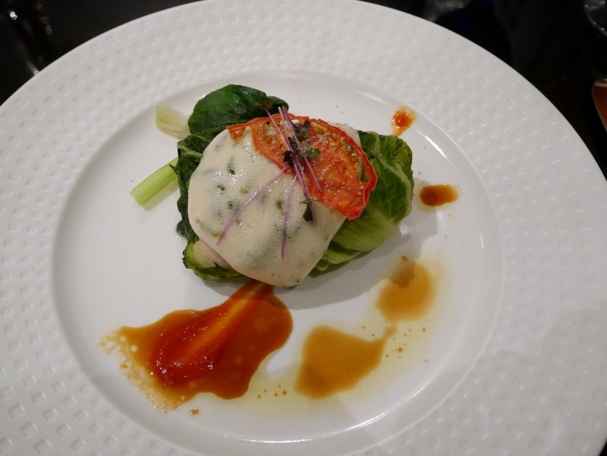 白菜に包まれたハマチのミキュイ