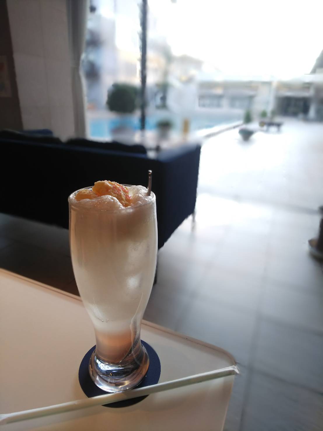 プールが見えるソファー席などもあり
