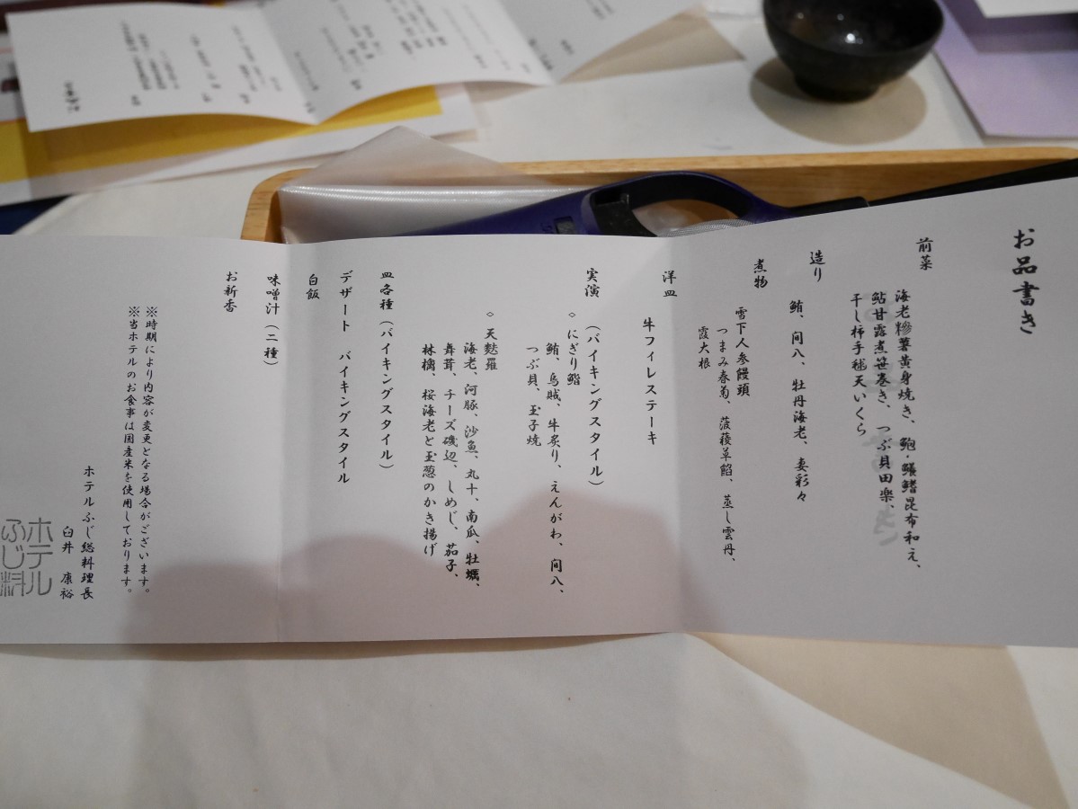 お品書きがあり、