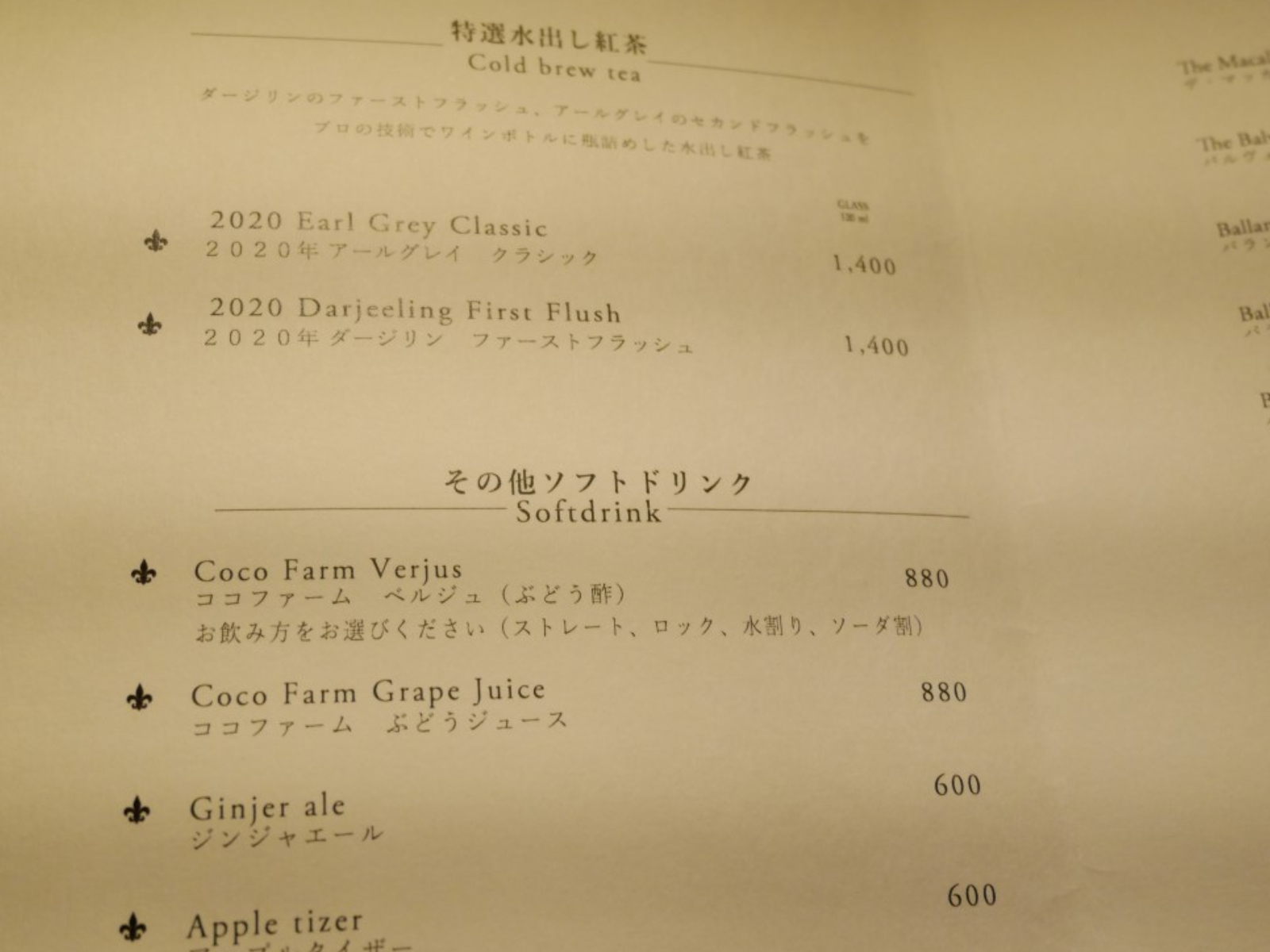 ソフトドリンクメニューも。