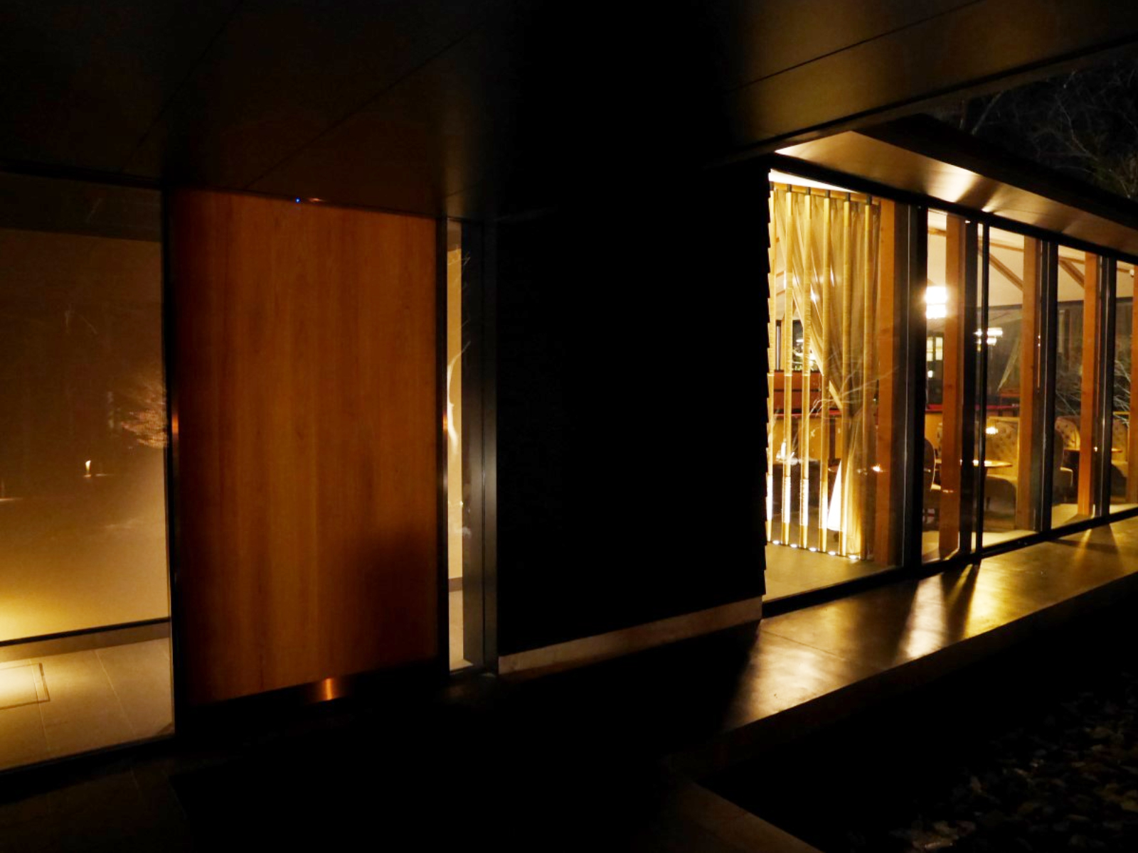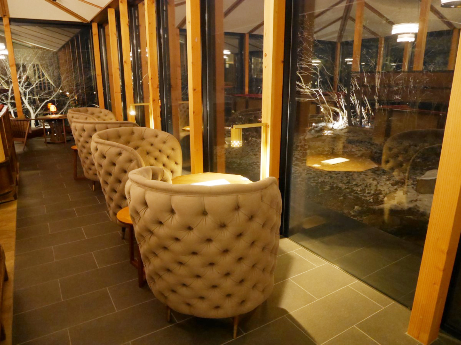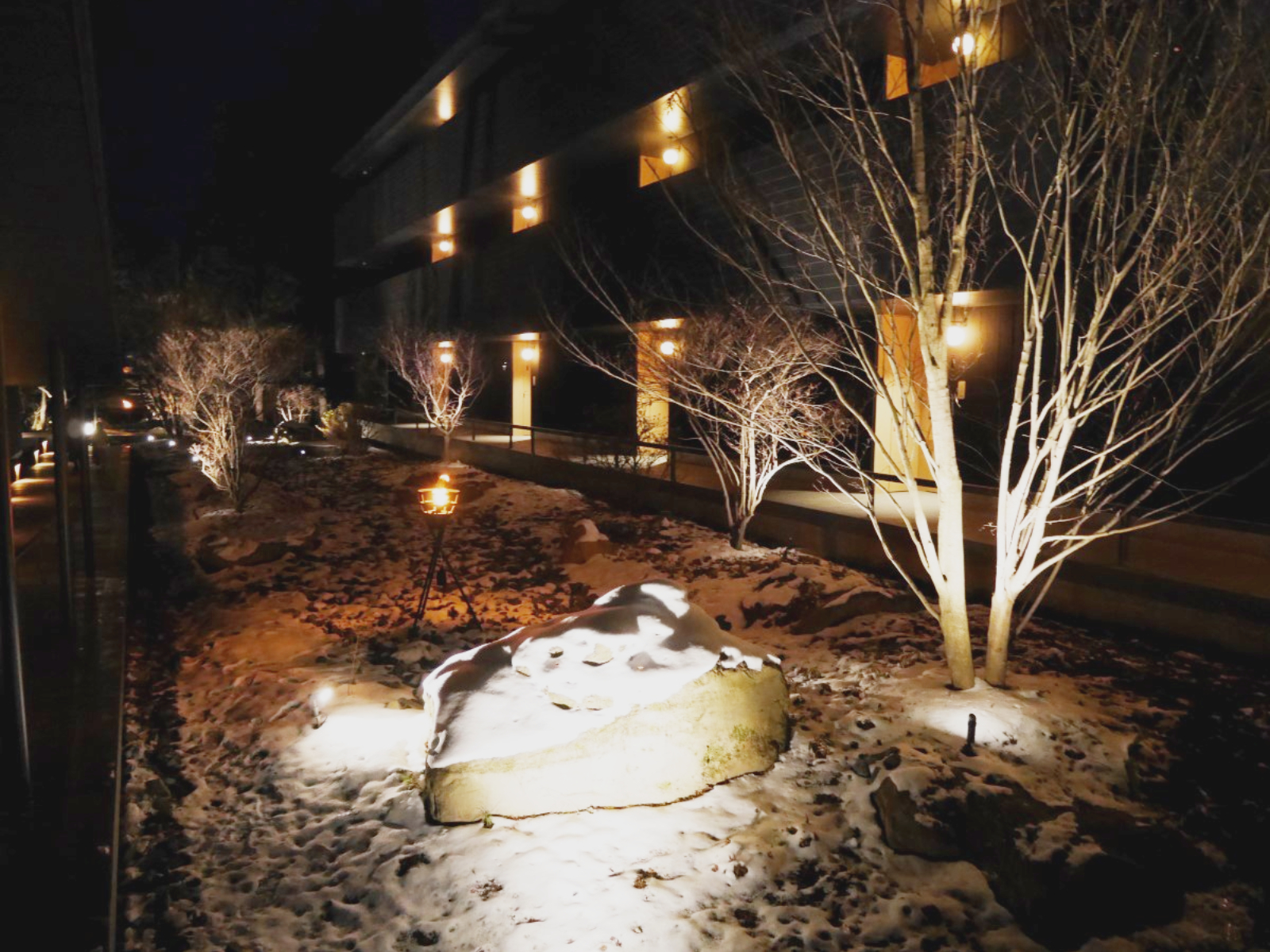 ライトアップされたお庭が見えて