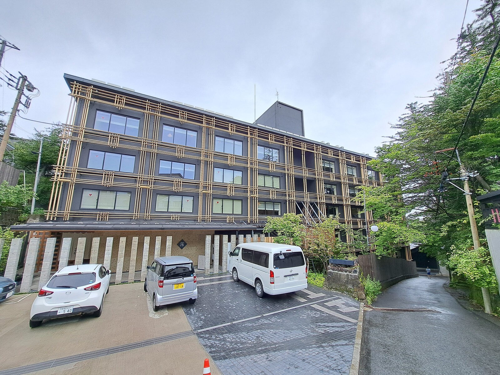 木組みのエントランスが