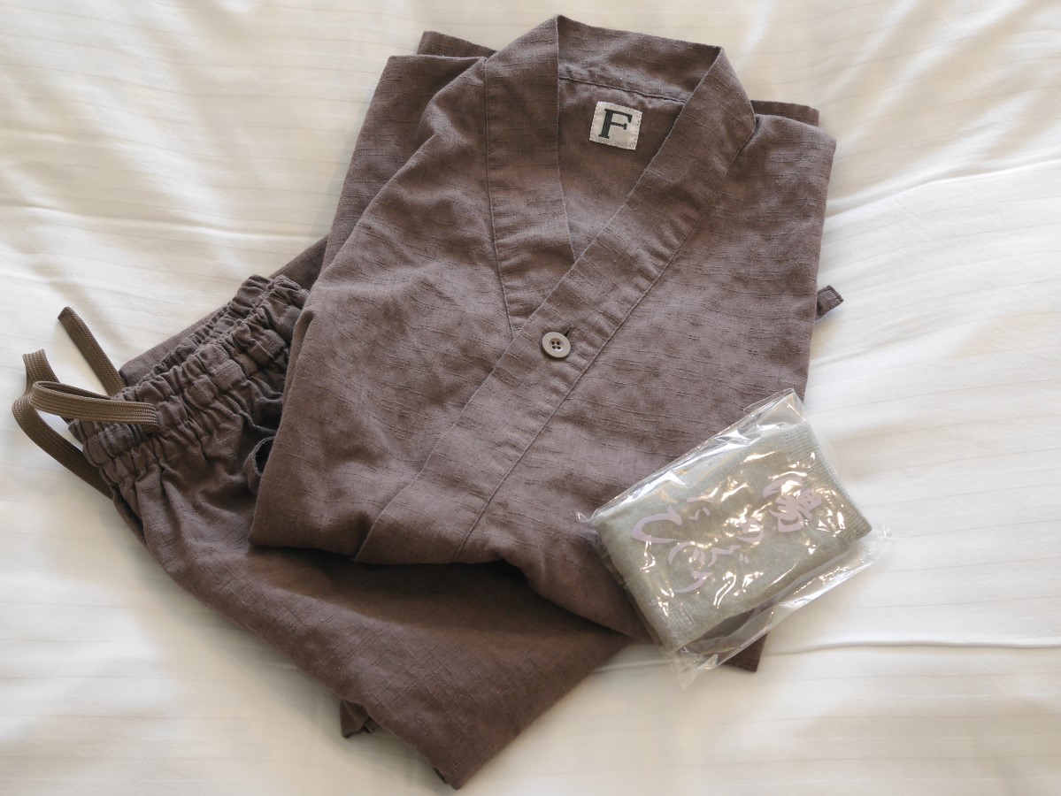 上下セパレートの館内着と足袋。