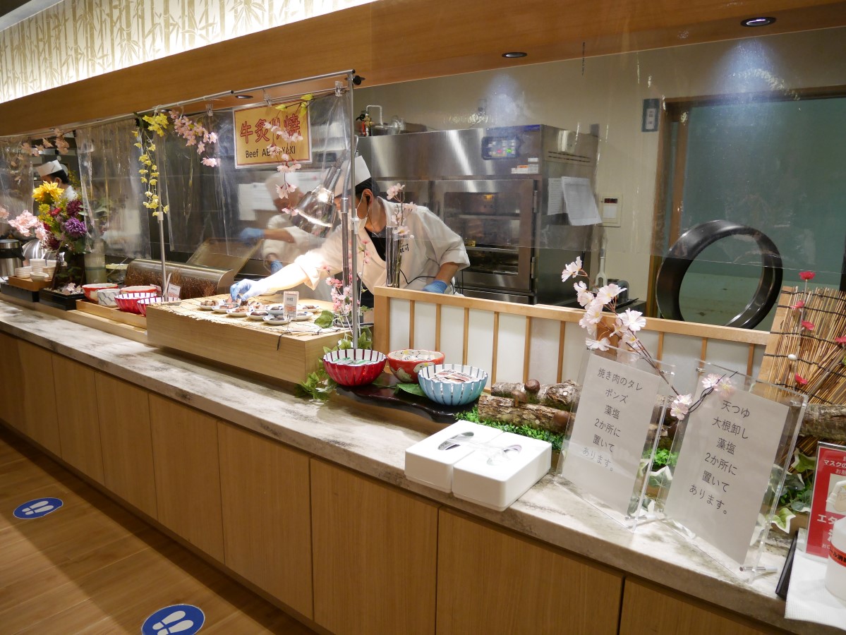 朝夕のビュッフェをいただく