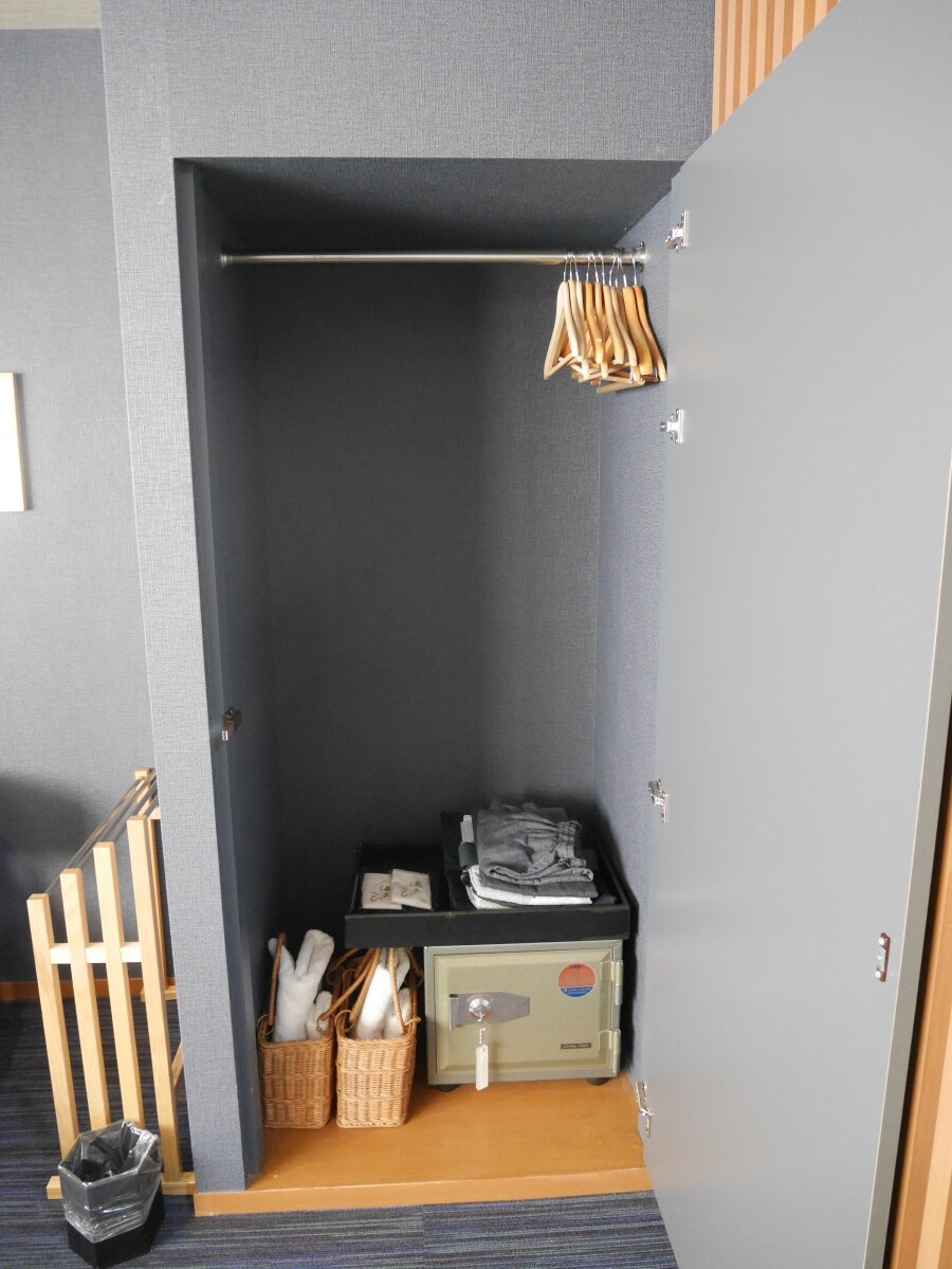 > 作務衣や湯カゴ、大きいタオル干しと