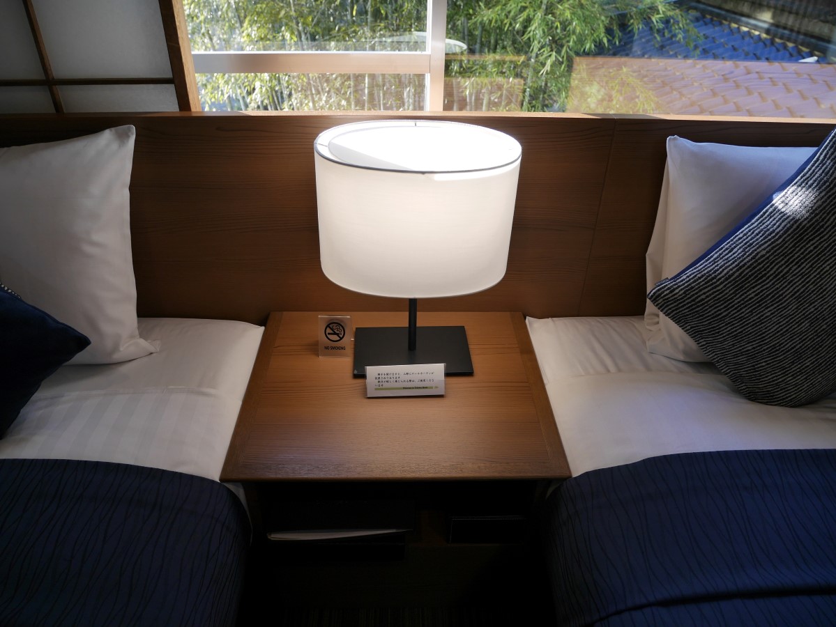 ツインベッドの中央に