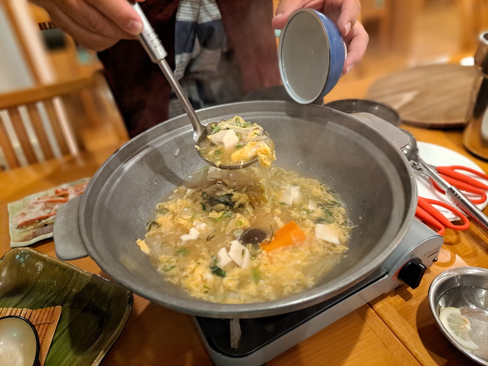 〆の蟹すき鍋。