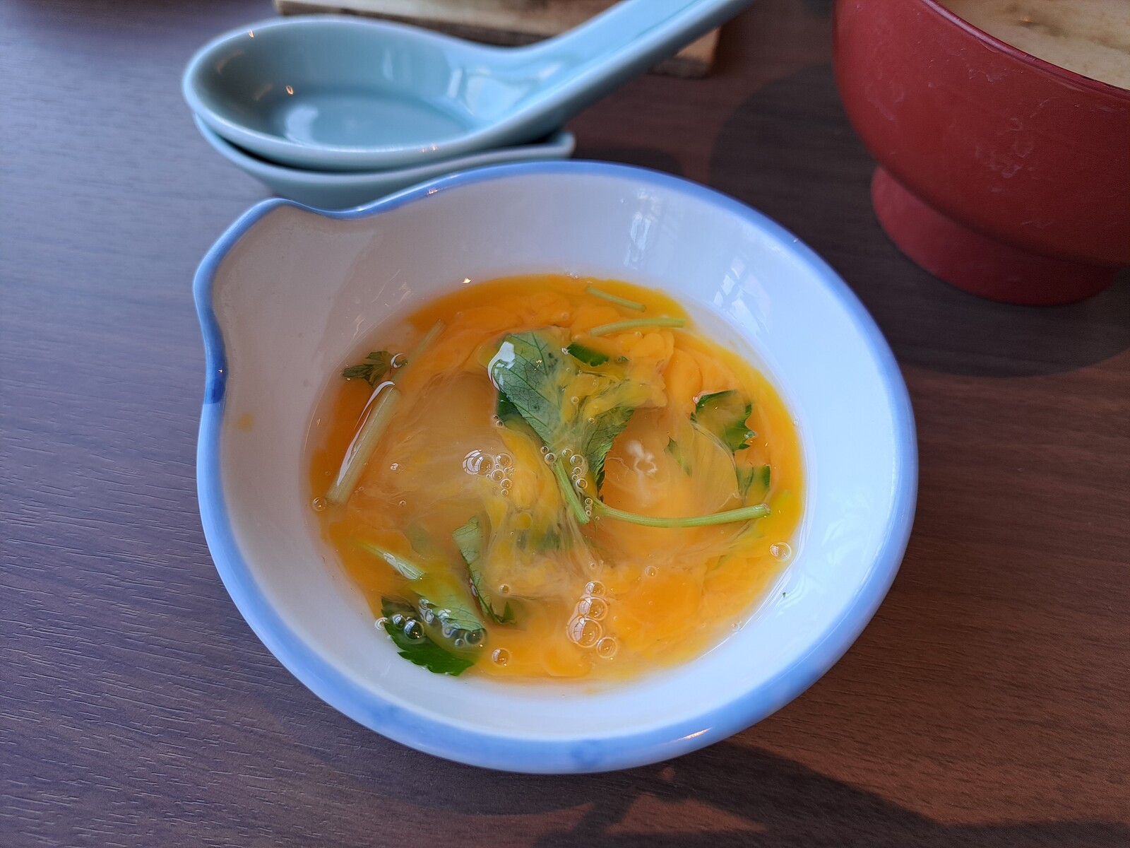 玉子と三つ葉を溶いて、、
