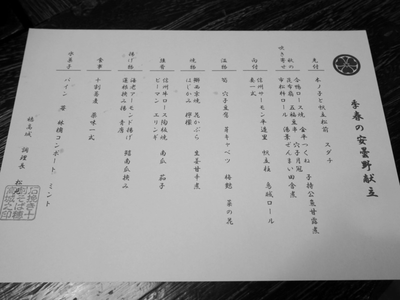 お品書き