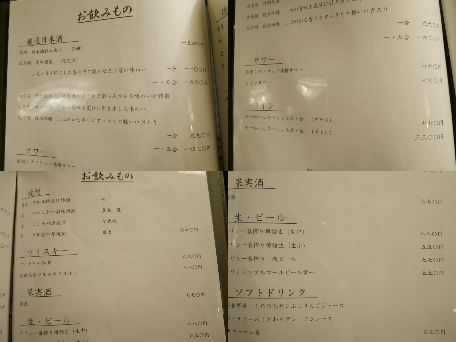 ドリンクメニュー