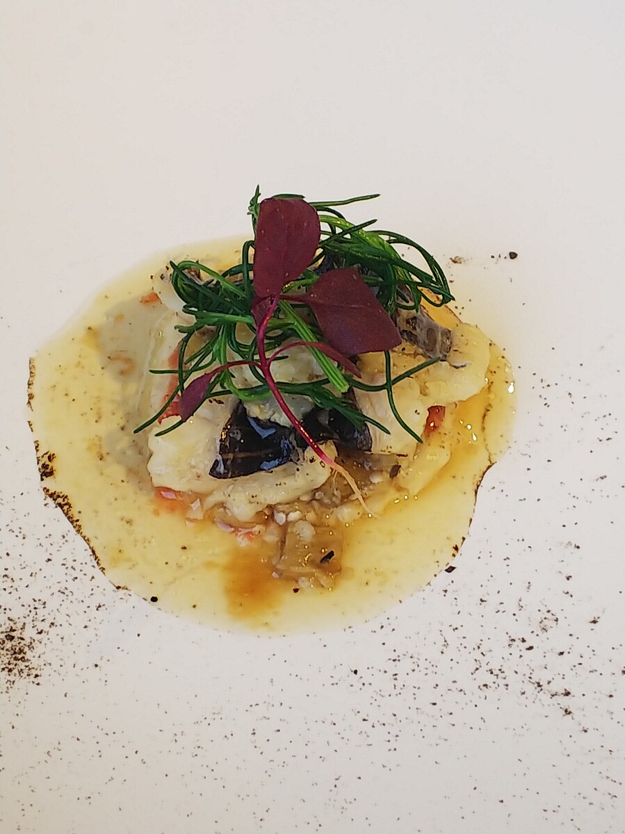 上に乗せた肝ソースが濃厚~