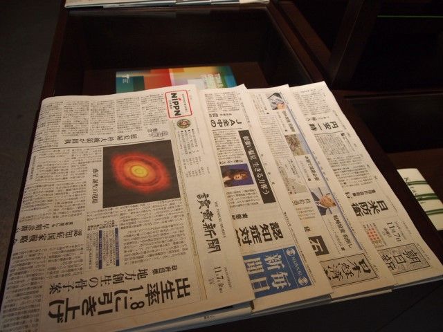 ラウンジで 新聞などナナメ読みして