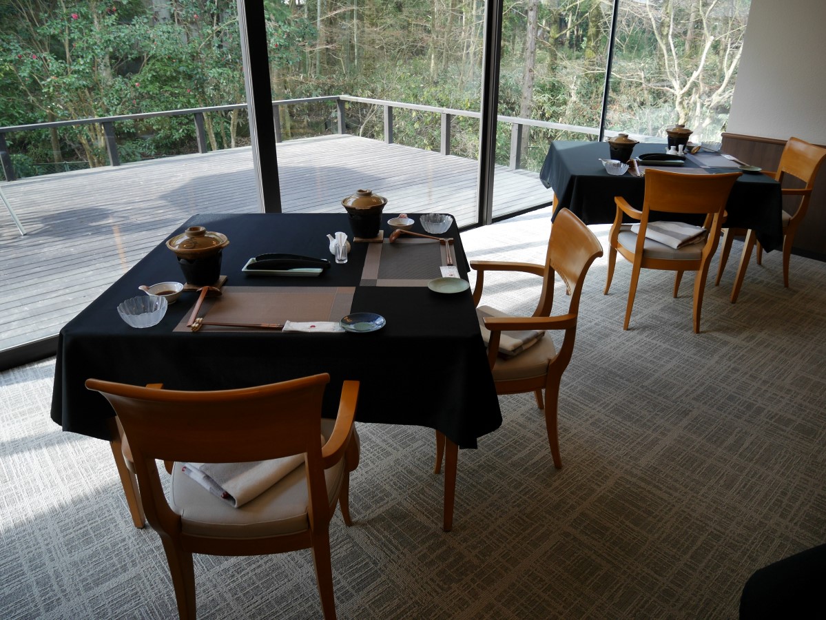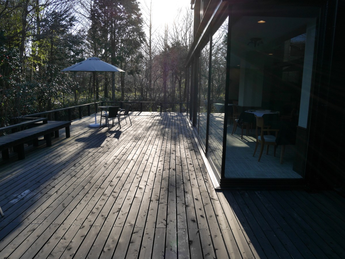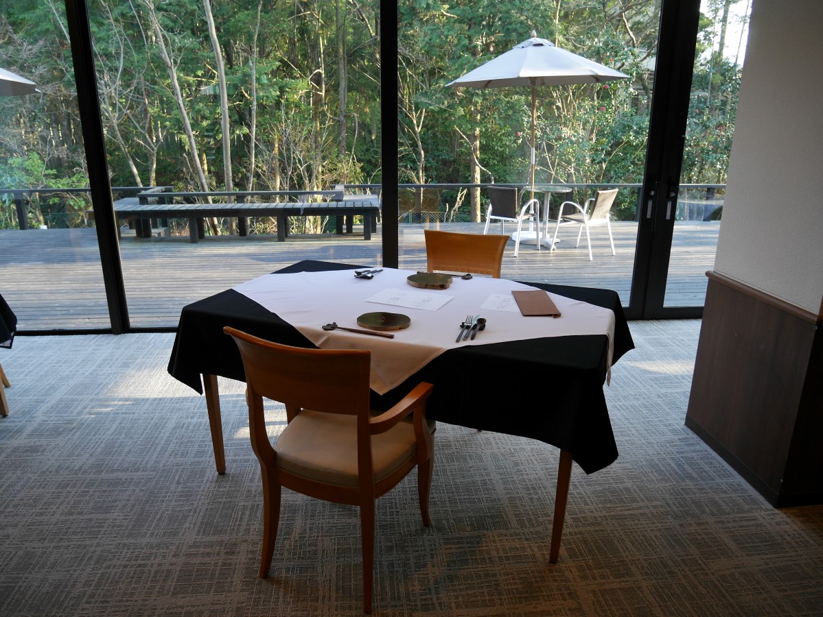 テラス越しに森が見える席へ