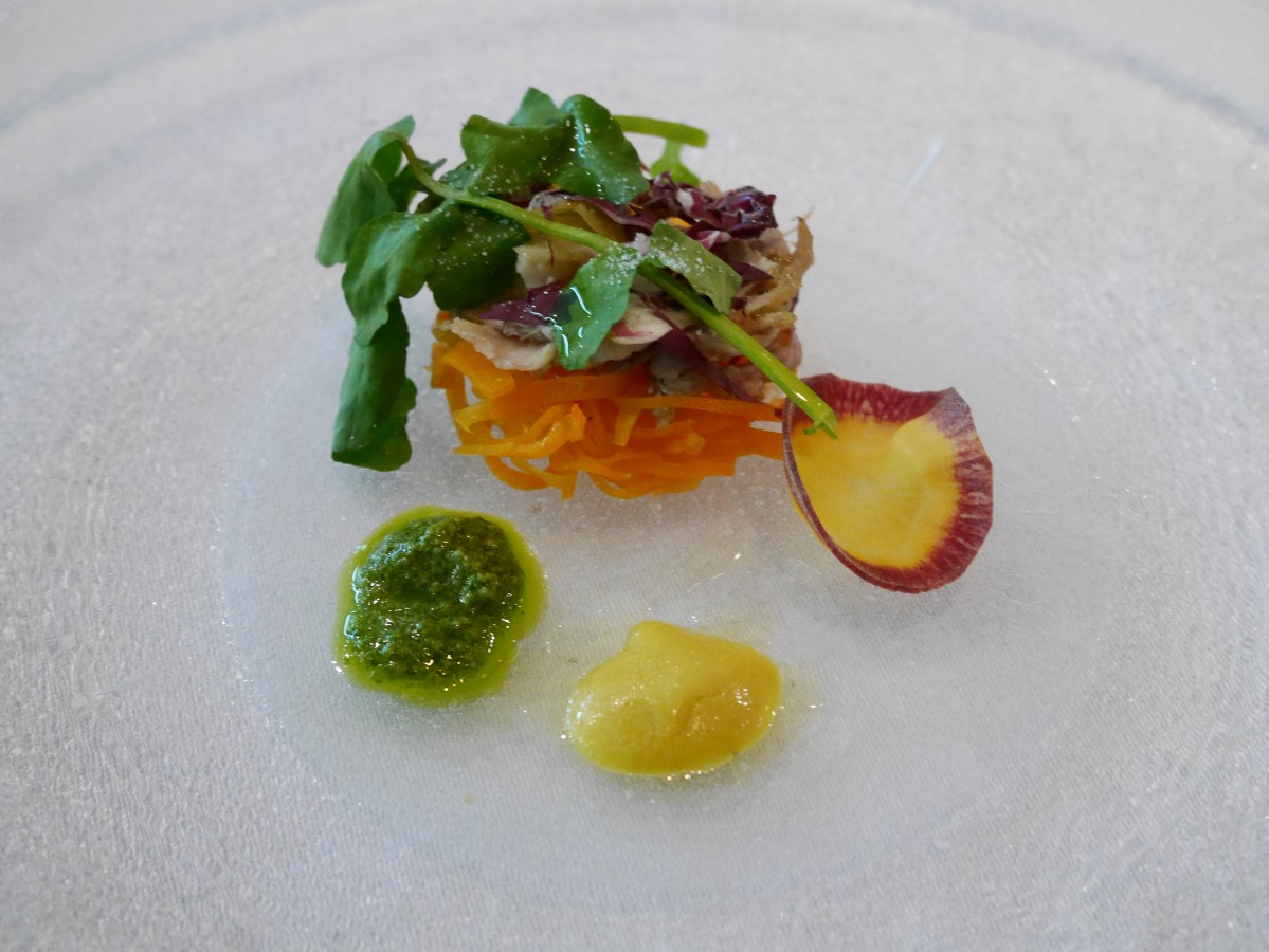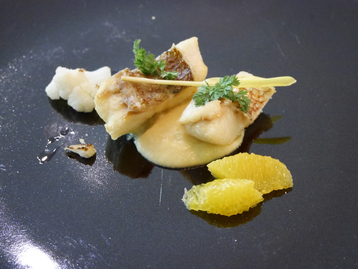 ブリの幽庵焼き 芽キャベツからすみ和え