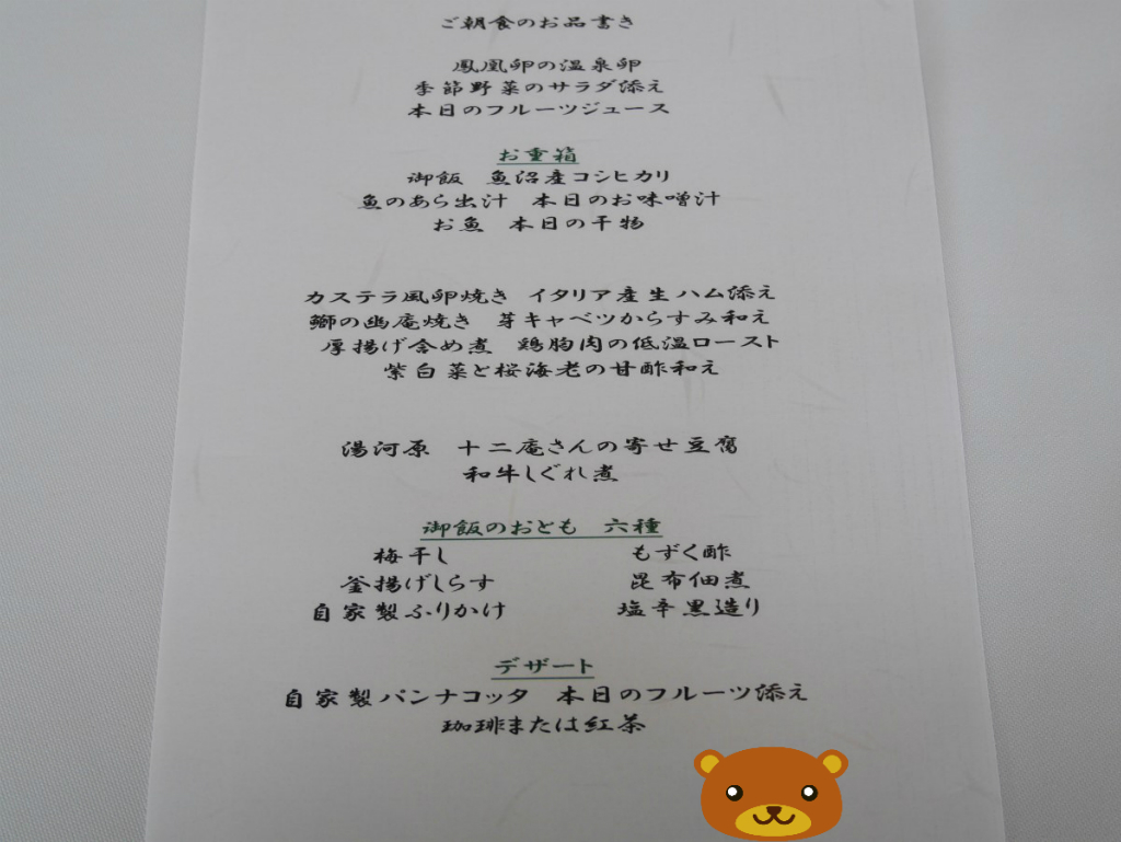 朝食にもお品書きあり。