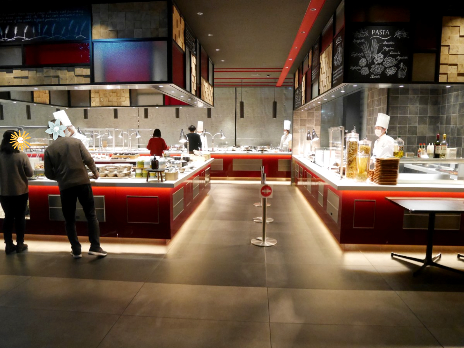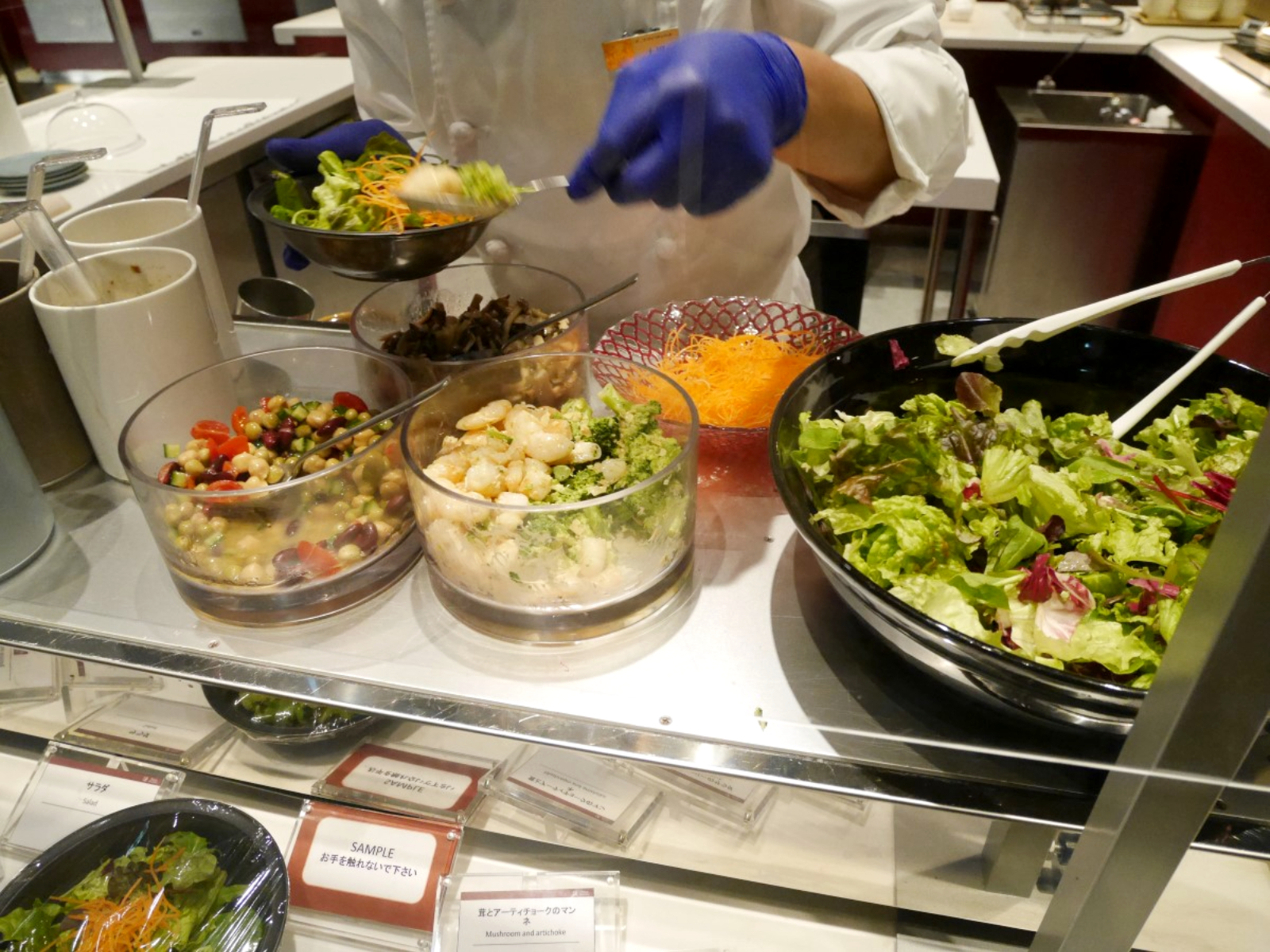 ビュッフェカウンターの前を通ります