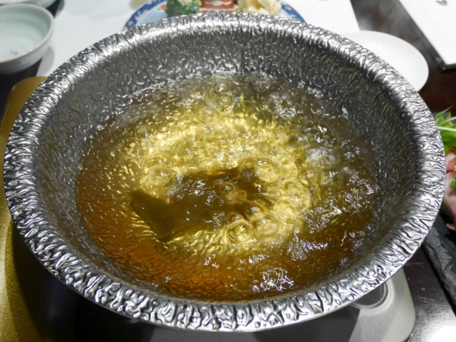 着席すると小鍋に着火。