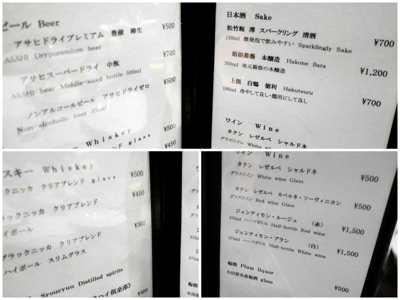 お品書きがある