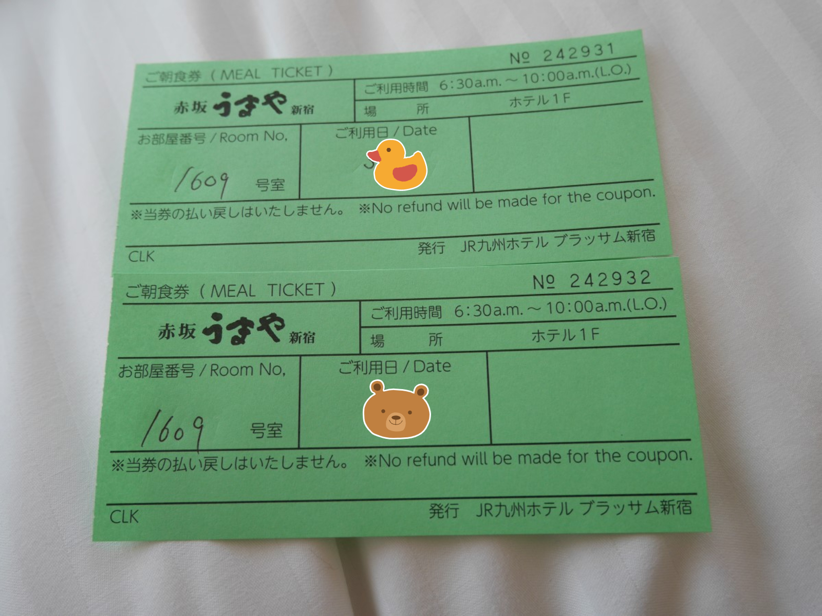朝食チケットを持って1Fへ