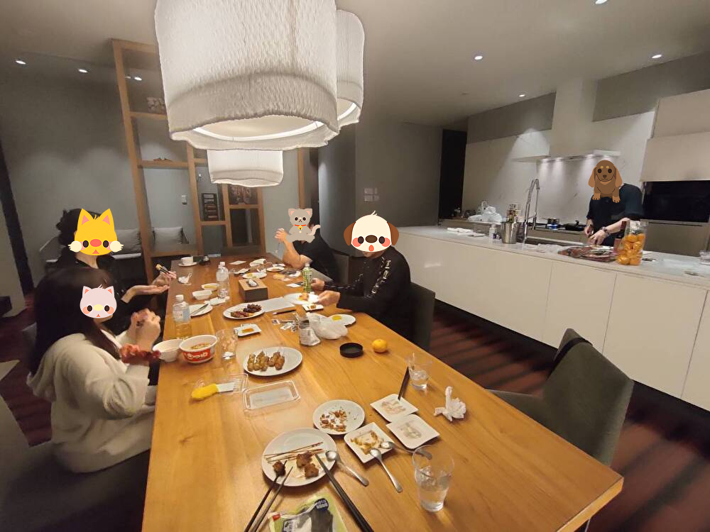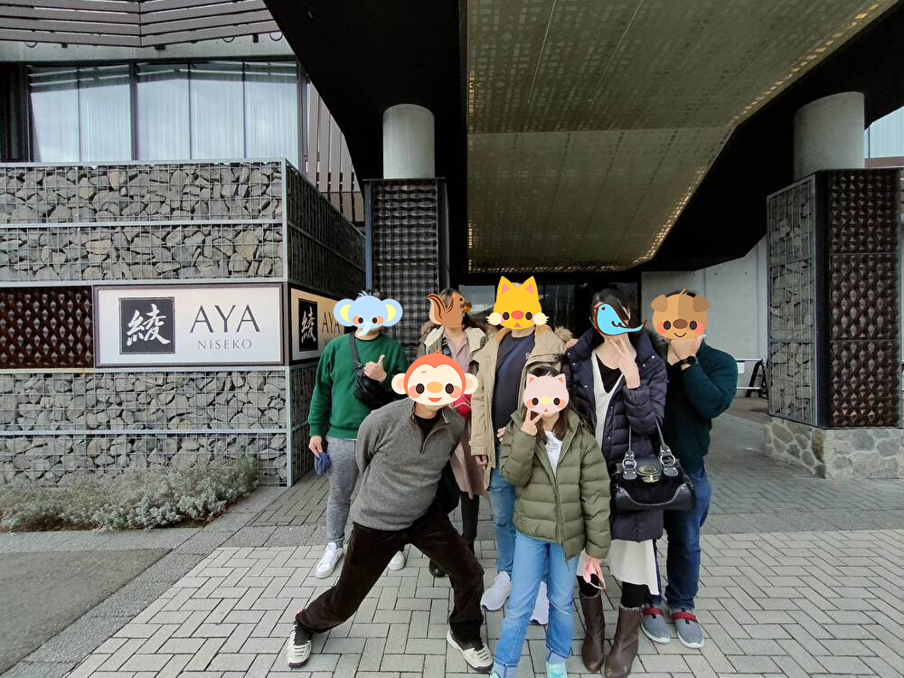 (U家は2泊目の宿泊先が隣、M家は帰りのヒコーキが同じ便)