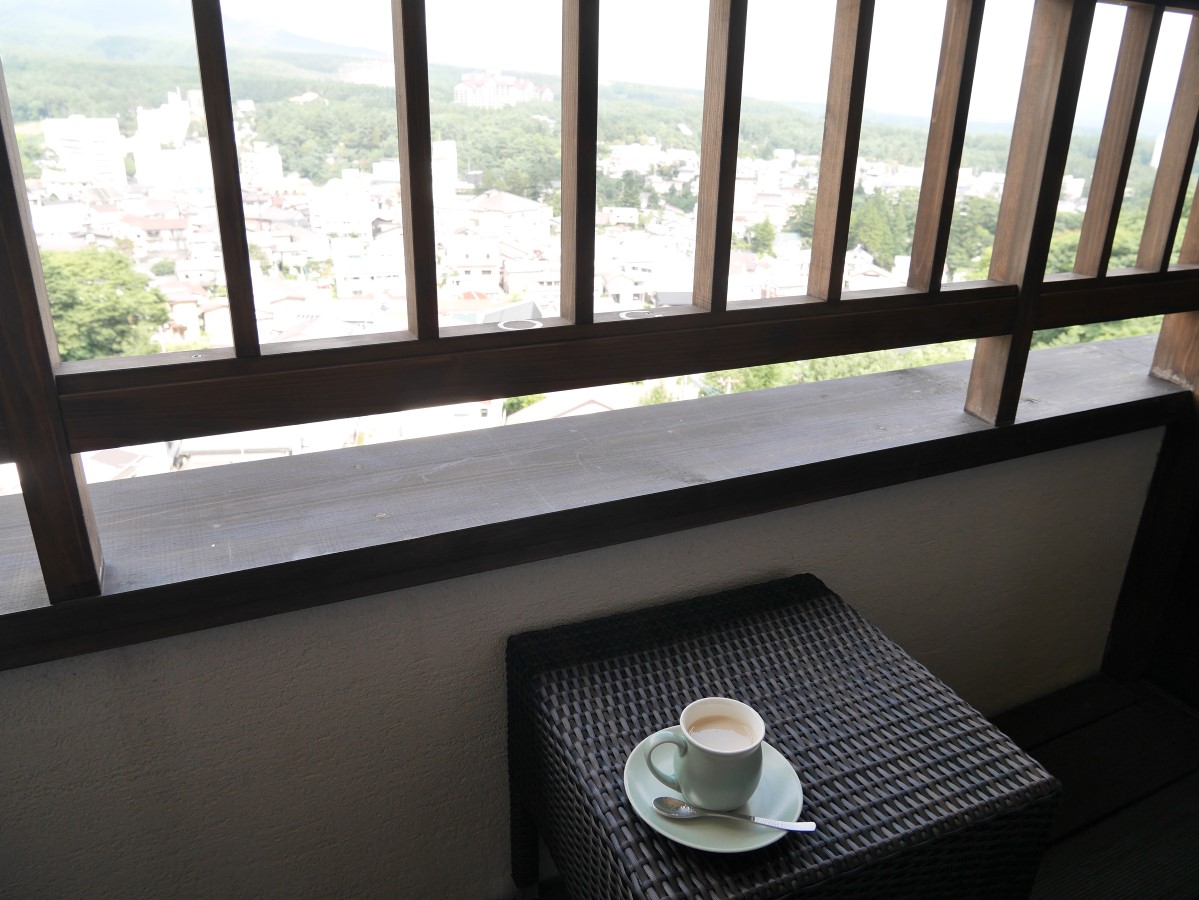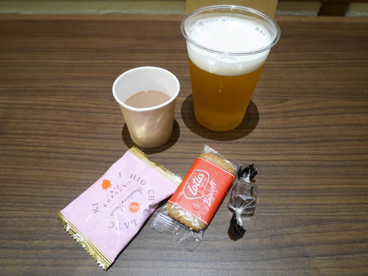 ラウンジから持ってきたコーヒーと