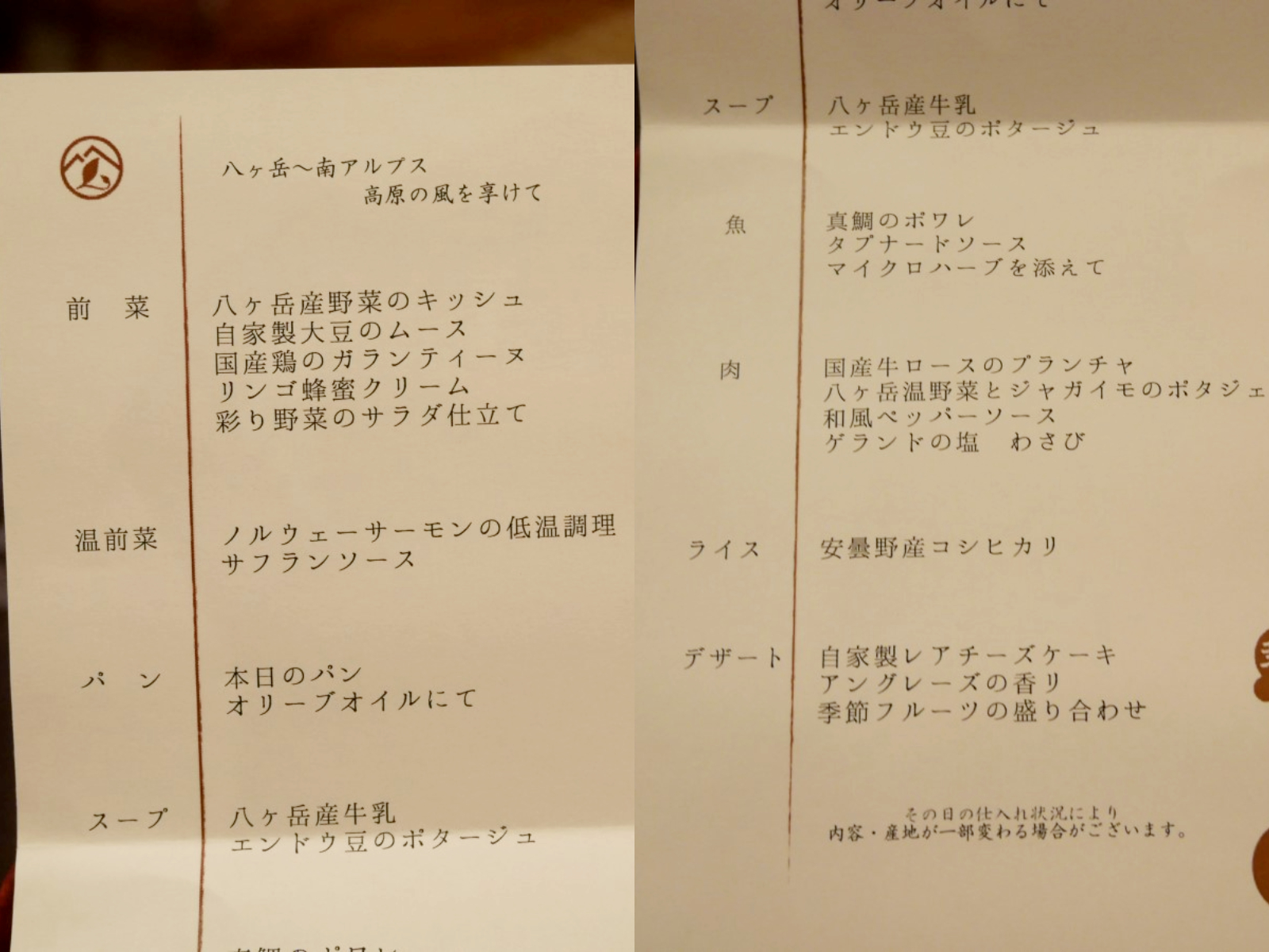 そういえば昨日のディナーも